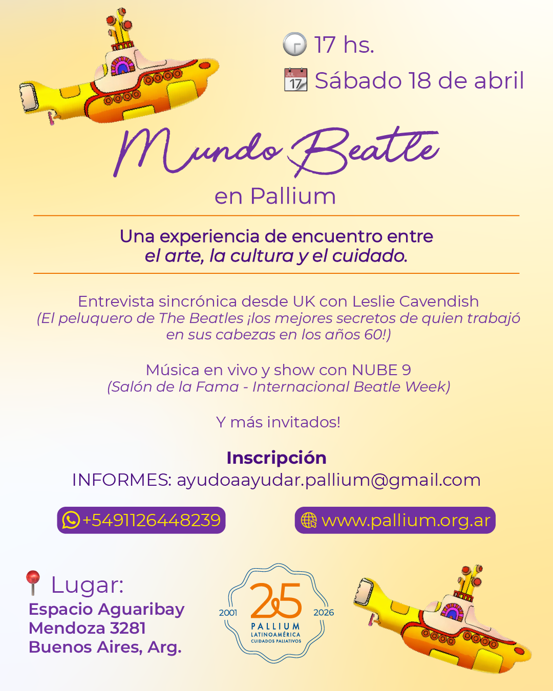 El próximo sábado 18 de abril a las 17 horas, Pallium Latinoamérica invita a vivir una experiencia única: un Encuentro Beatle Solidario que une música, comunidad y compromiso con el cuidado.