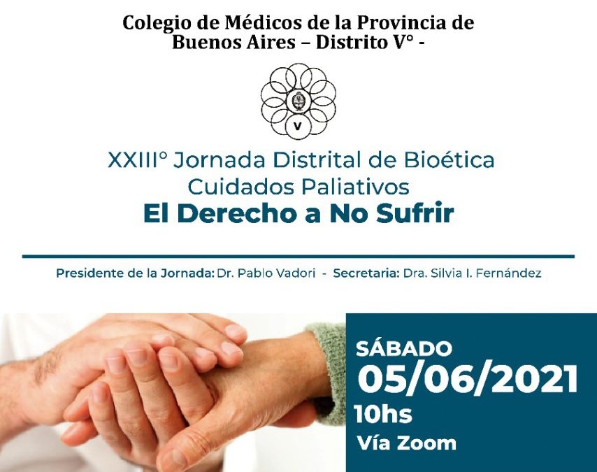 El pasado 5 de Junio el Colegio de Médicos de la Provincia de Buenos Aires Distrito Vº llevó a cabo la XXIIIº Jornada Distrital de Bioética y Cuidados Paliativos, El Derecho a No Sufrir. El Dr. Gustavo De Simone, director de nuestra institución, fue uno de los tres disertantes.